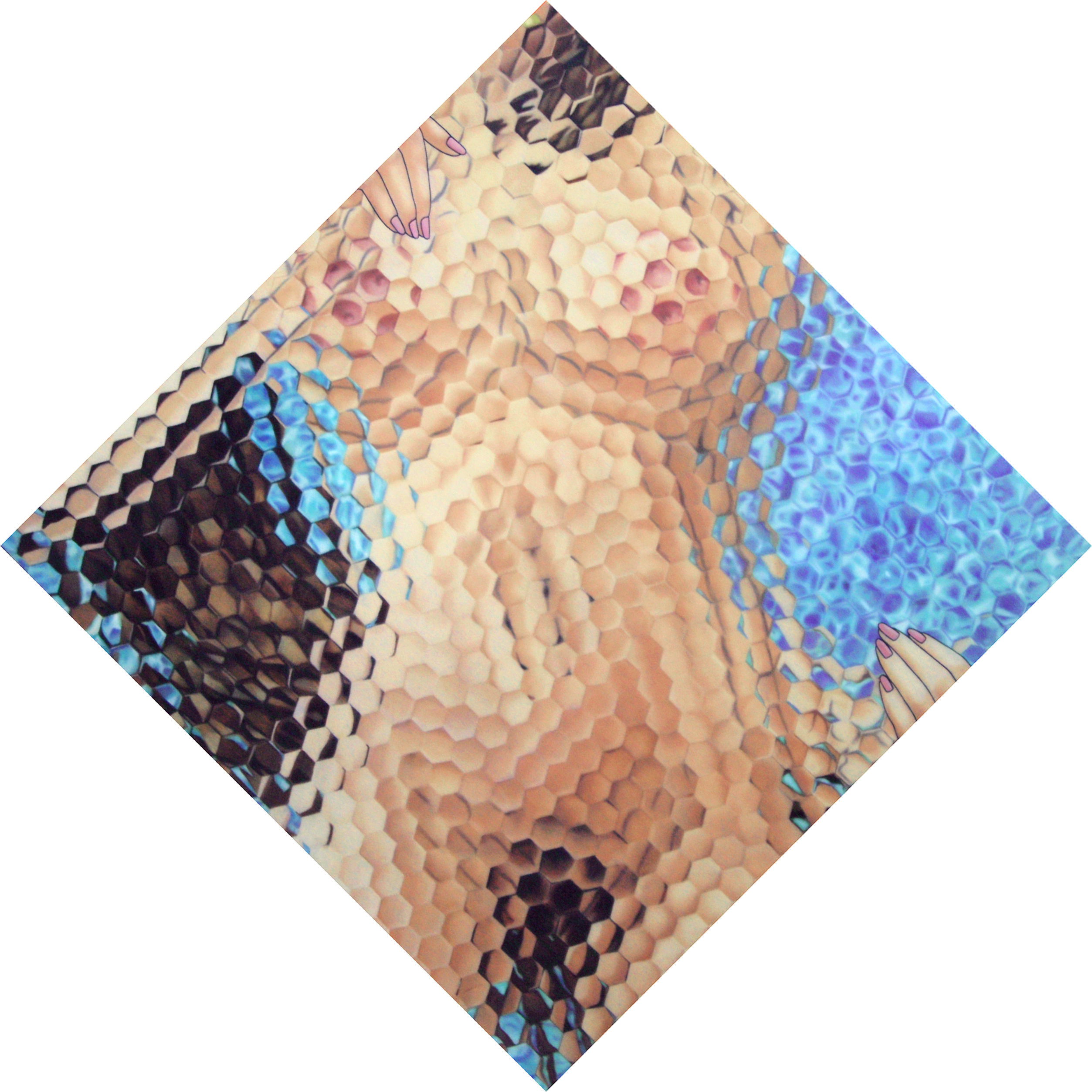 Susanne Wehmer recrea en la sala expositiva «Espai 0» de la Caixa en Tarragona un espacio tridimensional utilizando los recursos de marketing online: banners, vinilos, figuras sugerentes de un imaginario exótico.