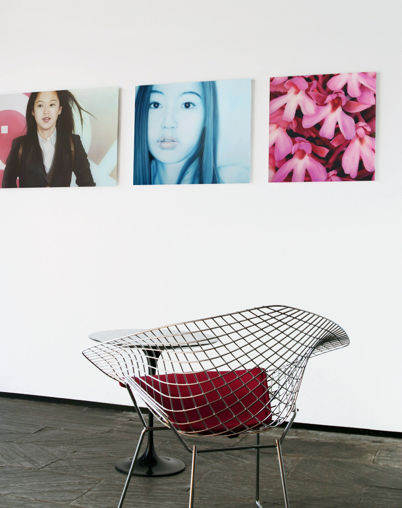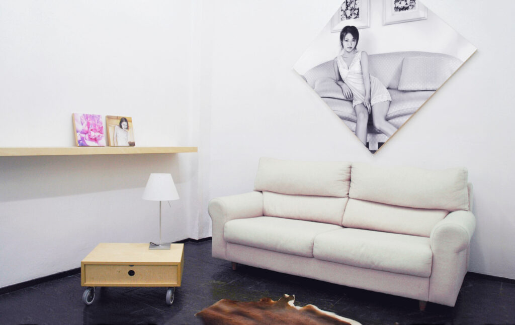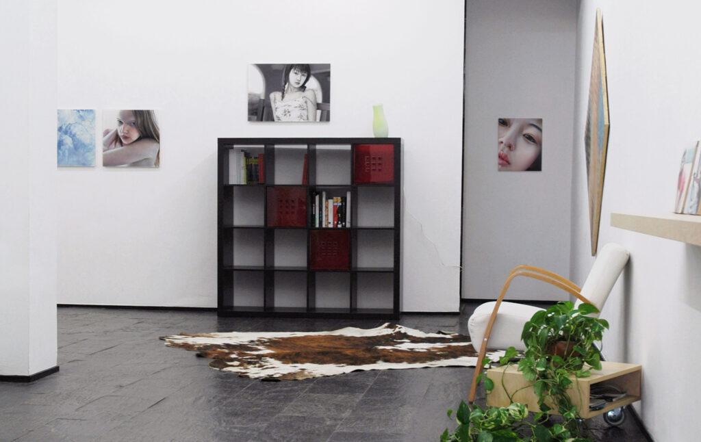El espacio expositivo de la galería quedó transformado en un ambiente «habitable» con muebles y objetos de decoración así como las pinturas hiperrealistas de Susanne al óleo sobre metacrilato.